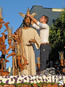![]() Las potencias del Cristo son diseño y labrada en dorada por Gonzalo Pérez Romero. El paso que lleva al Jesús del Sacrificio es diseñado y ejecutado por Antonio Cebrián Álvarez. El exorno floral del paso son claveles blancos y entre ellos flores siempreviva morada. La responsabilidad del martillo que durante 14 años lo lleva ejecutando, por el capataz Pedro Velázquez Montañés, y su cuadrilla de capataces, como Agustín Mayor, Marcos Ramos Juan de Dios Velázquez, José Manuel Carrasco, Rafael y José Ignacio Robles, que van llevando al Cristo del Sacrificio a los sones de la Banda de Cornetas y Tambores de la Asociación Musical San Juan Evangelista de la ciudad de Sevilla. ![]() ![]() ![]() ![]() ![]() ![]() ![]() ![]() ![]() ![]() ![]() ![]() ![]() ![]() ![]() ![]() ![]() ![]() ![]() |