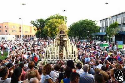 Daniel García Acevedo. La Virgen del Carmen, de la parroquia de San Leandro, volvió a procesionar, un año más, ayer sábado 13 de junio, por su feligresía y, sobre todo, la visita al Hospital Virgen Macarena.