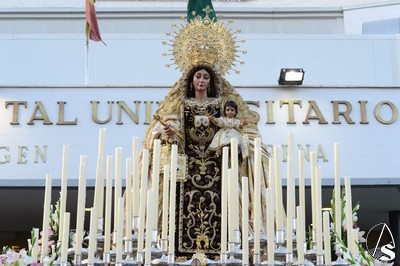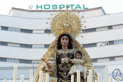 En este punto del recorrido, se acercó a la Stma. Virgen hasta la puerta de entrada del Hospital, donde personal sanitario esperaban al cortejo e, incluso, algún que otro paciente se asomaba por la ventana de la habitación para poder ver a la que es Reina del Carmelo.